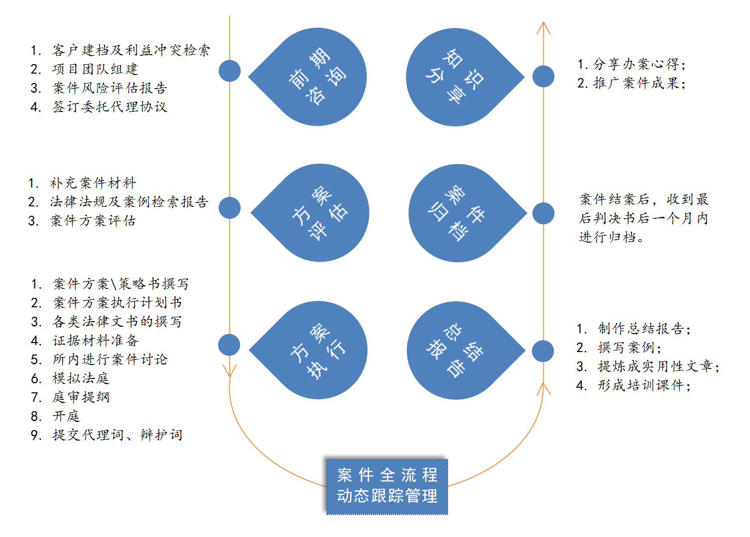 我们有高效的「诉讼案件流程管理体系」,每一个案件都将经过标准化流程处理,您可以随时了解案件的进程和发展态势,我们也会对案件关键节点进行精确控制,确保办理案件的品质,并不断优化案件办理、管理流程,实现对诉讼案件预期效果的管理。